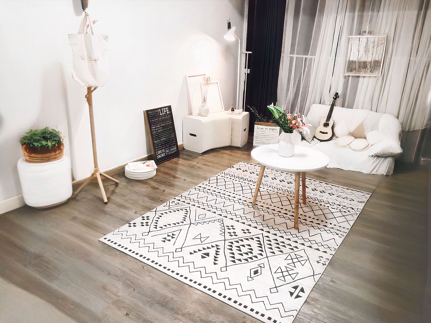 Ajoutez la touche finale à votre décor intérieur avec ce joli tapis bohème décoratif aux formes géométriques. Il est fabriqué en tissu de haute qualité avec un design élégant et moderne. Il est idéal pour les chambres, les salons, les cuisines ou les bureaux. Ce tapis est facile à nettoyer et à entretenir.