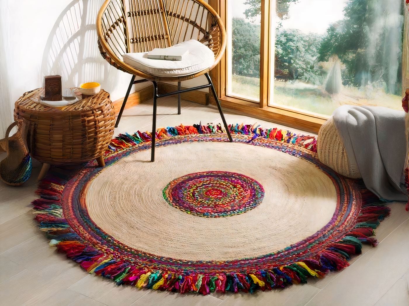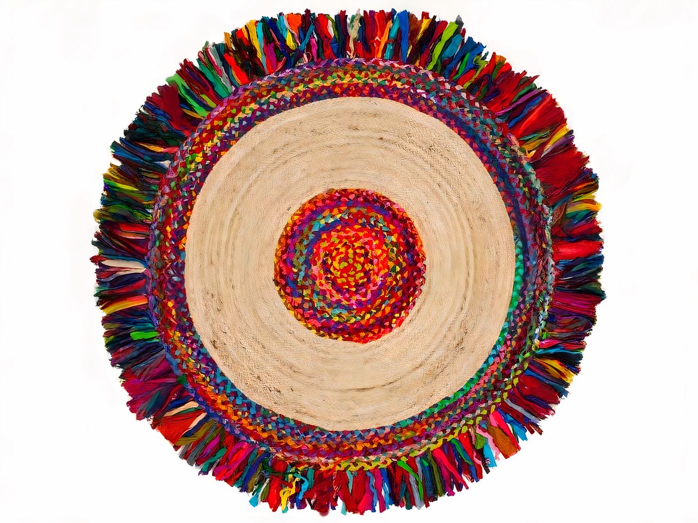 Découvrez notre tapis bohème rond réversible ! Cette magnifique pièce peut être utilisée comme décoration ou comme pièce fonctionnelle dans votre maison. Elle est parfaite pour ceux qui veulent ajouter une touche de bohème-chic à leur espace.