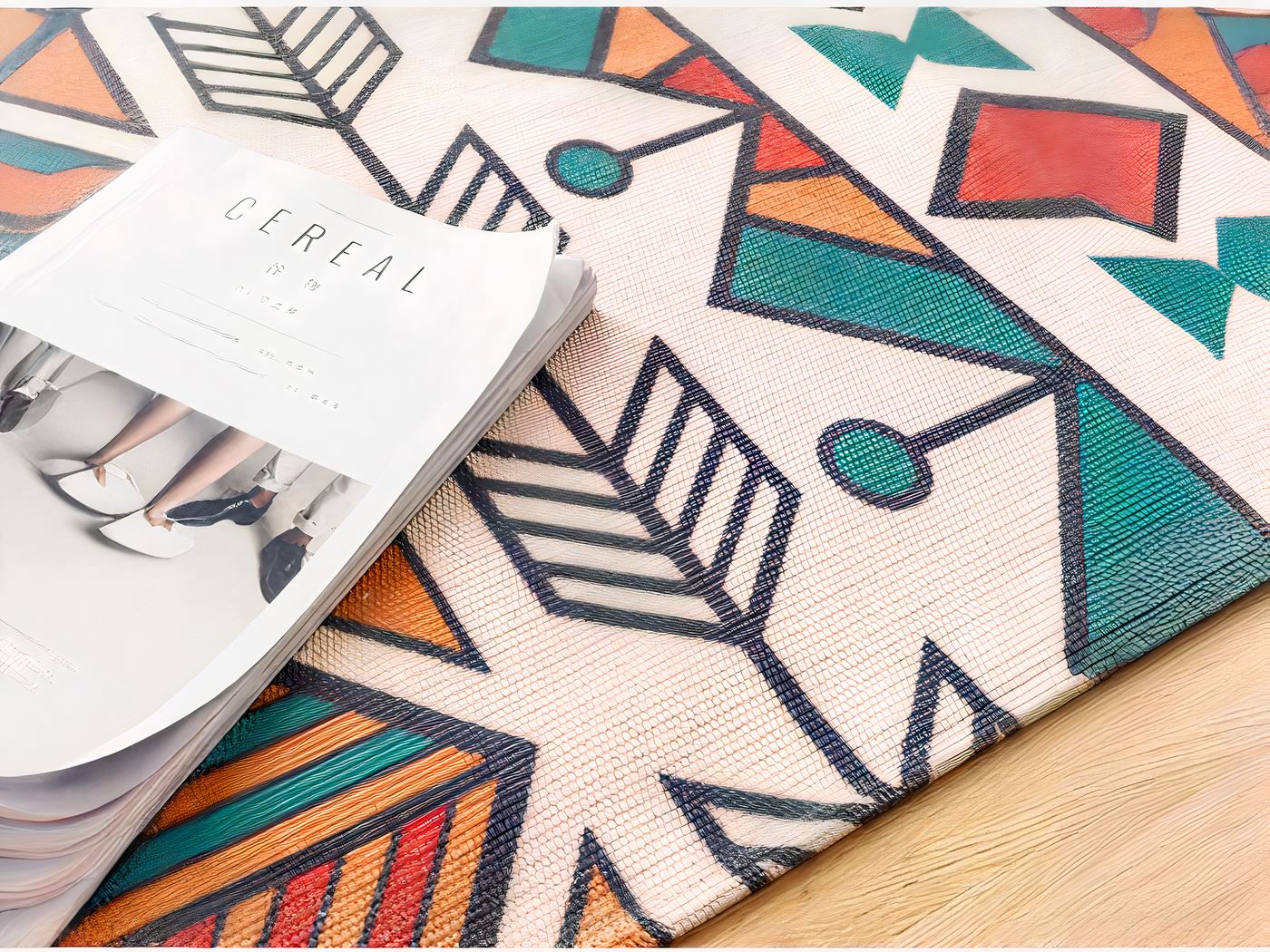 Les motifs et les couleurs audacieuses ne manqueront pas de faire sensation, et la durabilité de ce tapis géométrique le rend idéal pour les zones à fort passage.