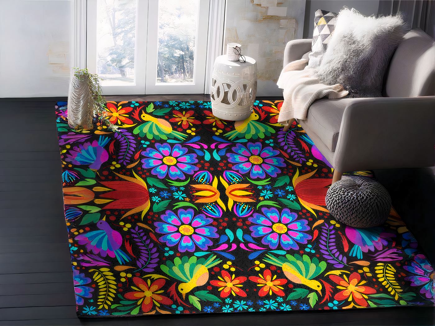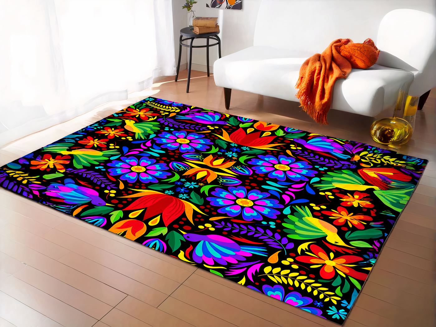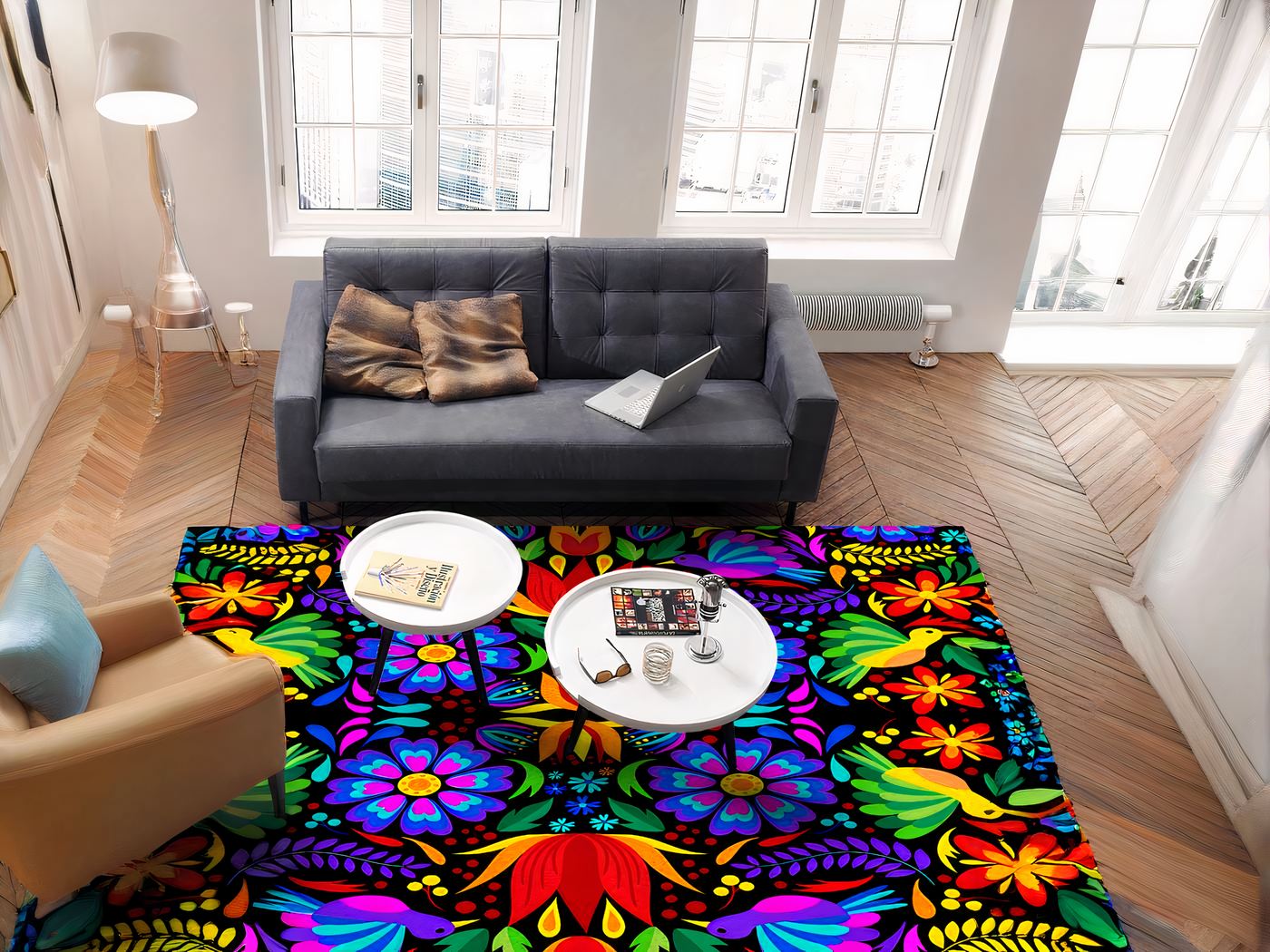 Si vous aimez les tapis colorés, alors ce tapis mexicain est fait pour vous ! Avec ses jolies fleurs colorées, il ajoutera une touche exotique à votre intérieur.