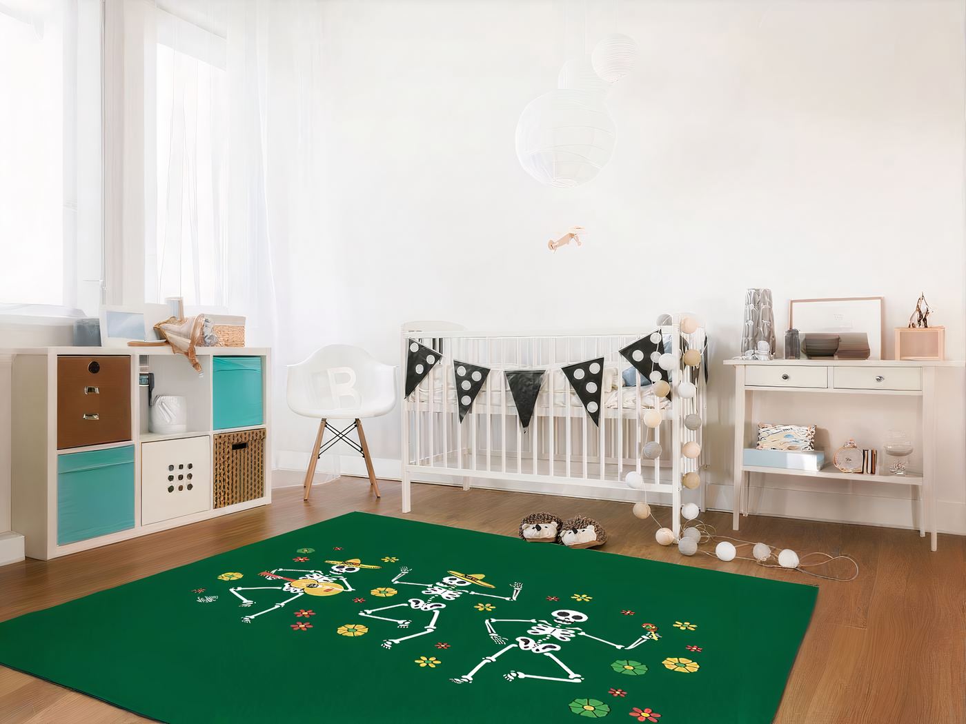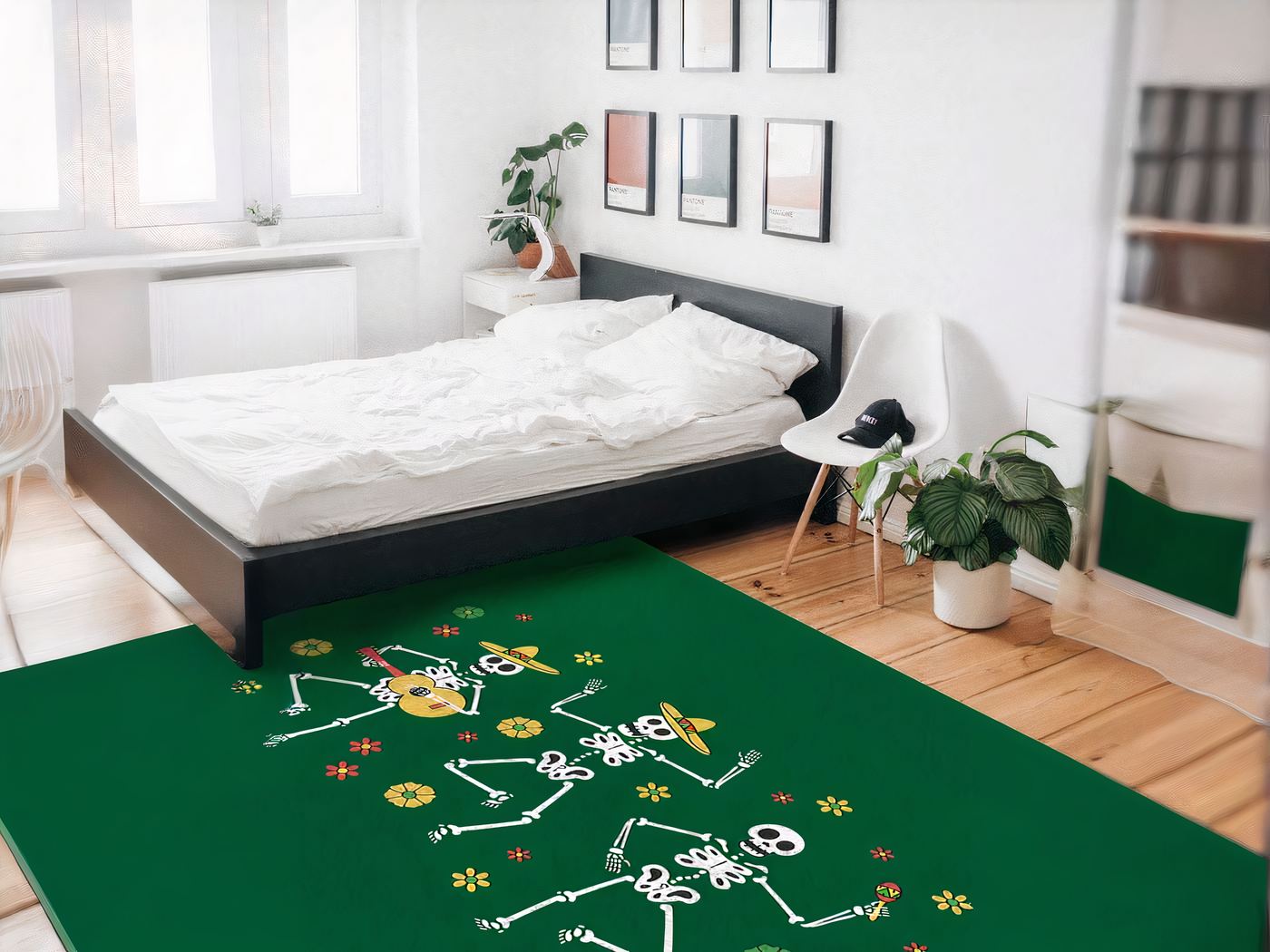 Tout droit sorti d’un film d’horreur, ce tapis mexicain squelette dansant est sûr de faire frissonner tes invités ! Ce tapis atypique est recouvert de squelettes enroulés autour de l’arbre de la vie, et au centre, un crâne danse joyeusement ! Idéal pour une soirée Halloween ou un décor Mexicain mystique, ce tapis ajoutera une touche d’élégance macabre à ton intérieur. En plus d’être terrifiant, le tapis mexicain squelette dansant est également très confortable et doux au toucher, grâce à sa composition en tissu polyester.