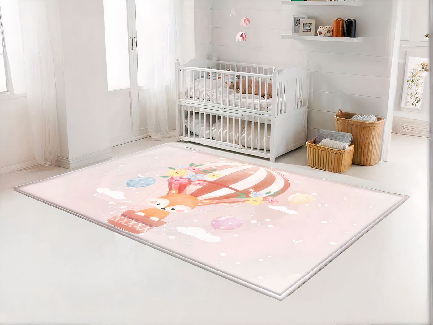 La couleur rose vibrante de ce tapis renard est parfaite pour ajouter une touche de couleur à n’importe quelle pièce, et les ballons ajoutent une touche supplémentaire d’amusement.
