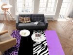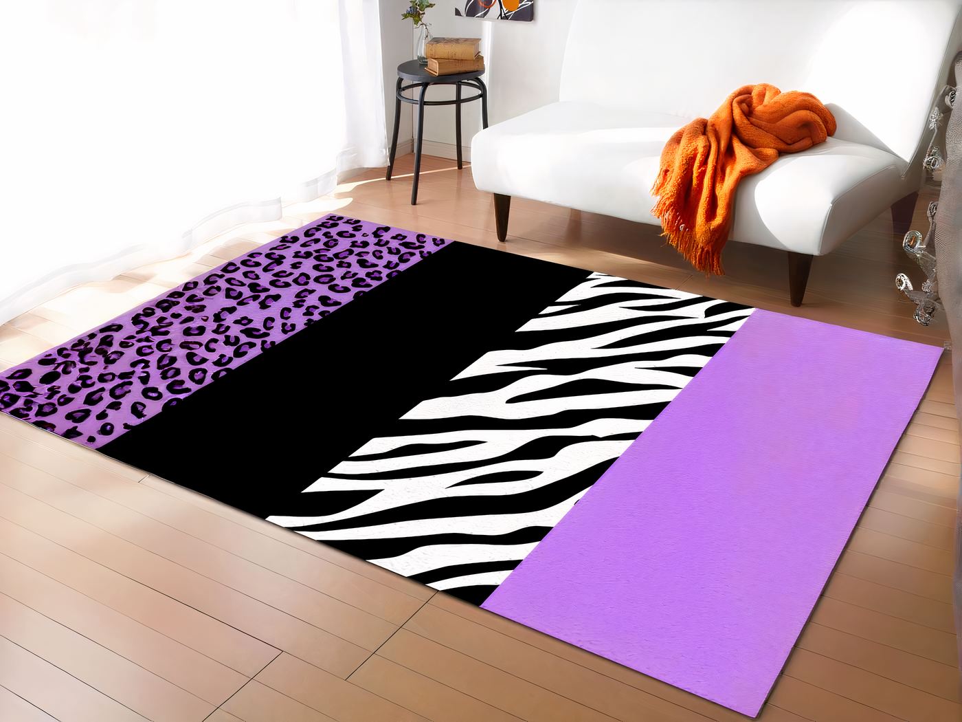 Le tapis zèbre est fabriqué à partir de matériaux de haute qualité, et les rayures violettes sont vibrantes et accrocheuses.