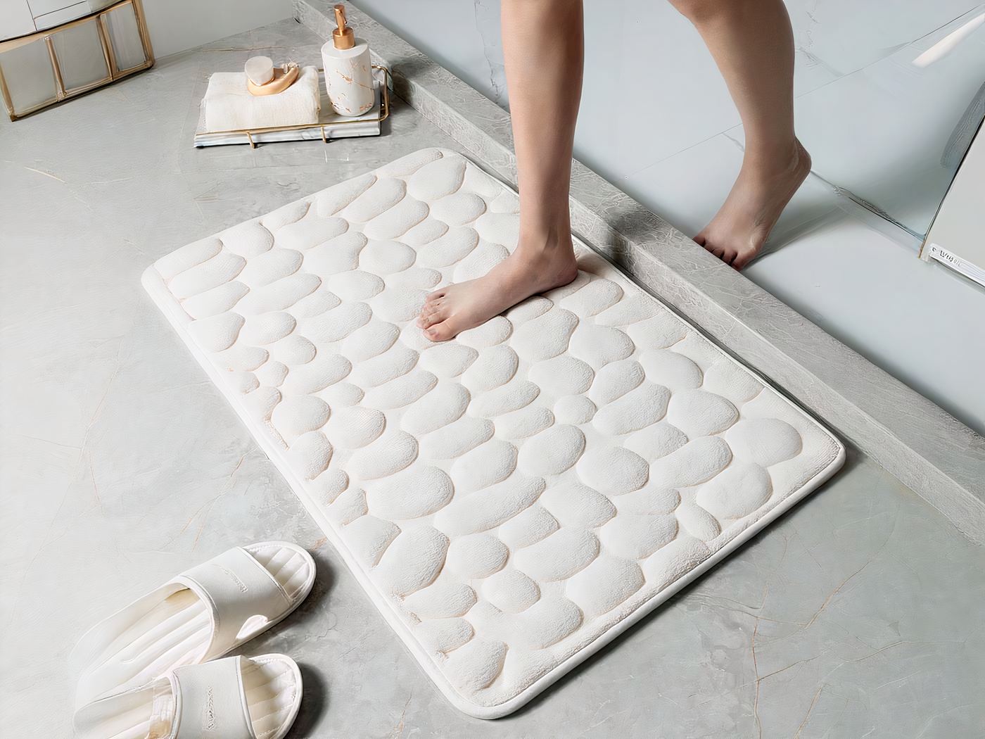 Ce superbe tapis de salle de bains est parfait pour ajouter une touche de luxe à votre salle de bains. Fabriqué à partir des meilleurs matériaux, il est ultra-doux pour vos pieds, ce qui en fait un plaisir à utiliser. La matière est également super absorbante, ce qui rend votre tapis idéal pour votre salle de bain et vos toilettes. Avec son design en forme de galets, ce tapis complétera n’importe quel décor de salle de bains.
