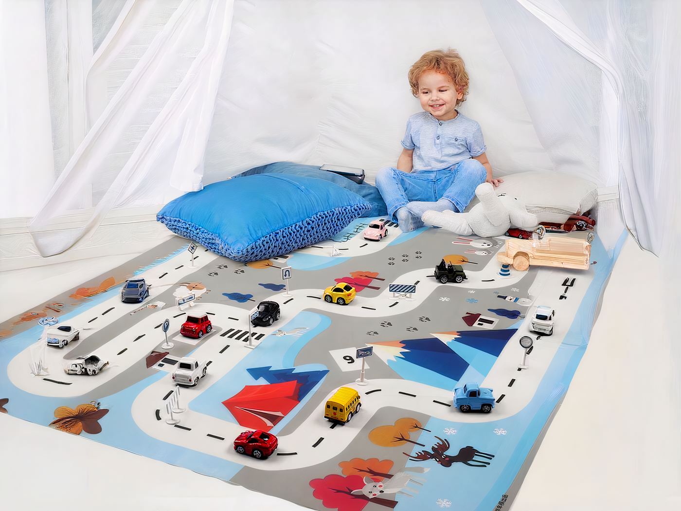Ce produit innovant est parfait pour les petits qui aiment les voitures et être actifs. Le tapis présente un circuit autour duquel les enfants peuvent faire la course avec leurs voitures miniatures. Il est également durable et facile à nettoyer, ce qui en fait le rêve de tous les parents. De plus, il est portable pour que vous puissiez l’emporter avec vous lors de vos déplacements.