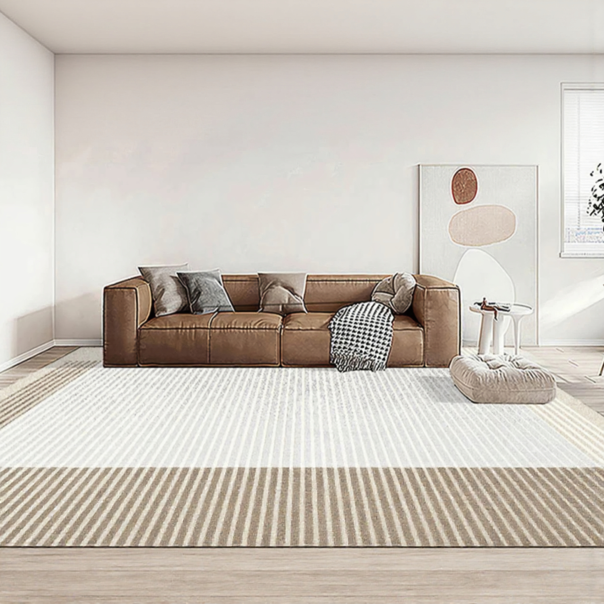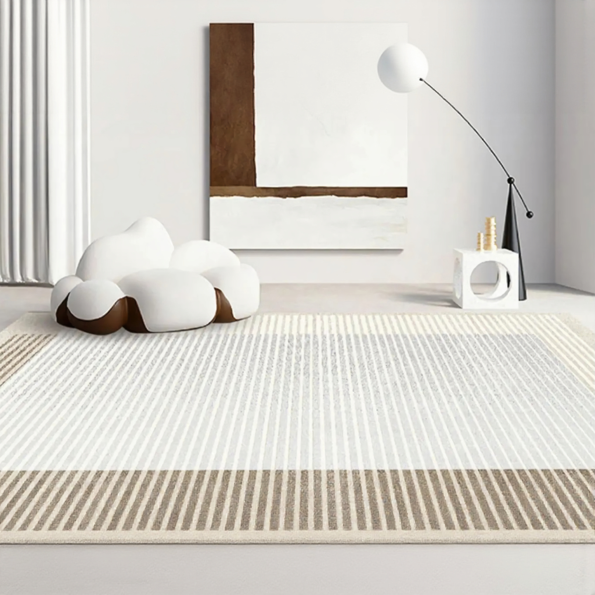 Tissé avec soin, ce tapis conjugue esthétisme et douceur sous les pieds. Ses lignes épurées créent un rythme visuel harmonieux, tandis que sa matière agréable ajoute une sensation de chaleur feutrée. Vous marchez, vous respirez.