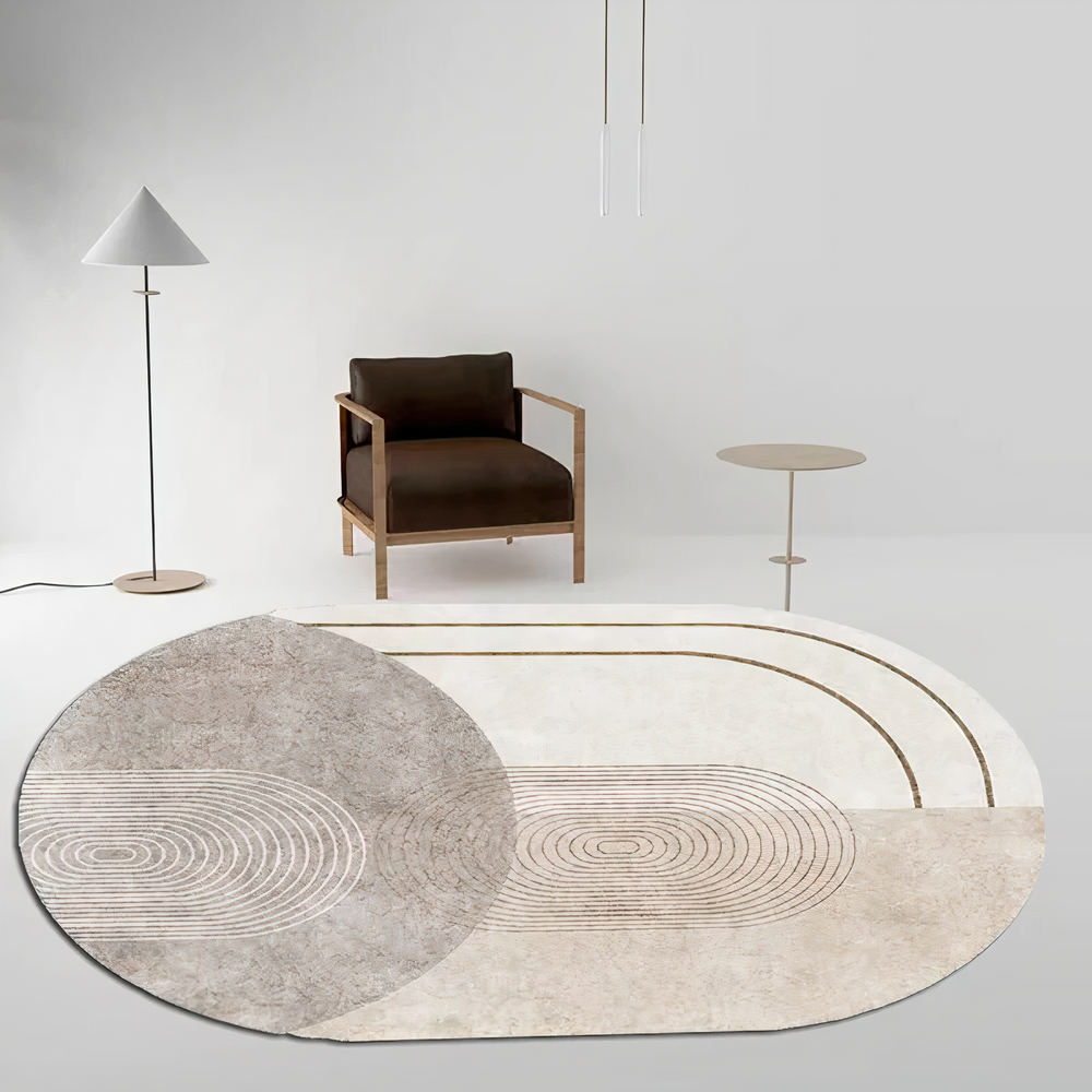 Le tapis épouse le sol avec la douceur d’un galet poli par le temps. Sa silhouette ovale, irrégulière, évoque un souffle calme dans la pièce. Vous ressentez une sensation immédiate d’espace purifié, comme si chaque objet retrouvait sa juste place.