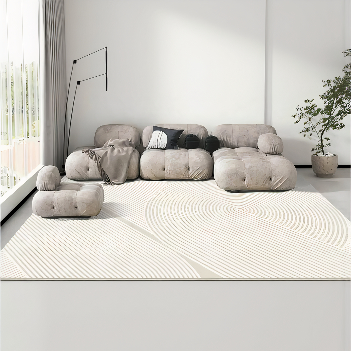 Ce tapis japonais uni, inspiré du style Japandi, transforme votre espace en havre de paix. Sa teinte douce capte subtilement la lumière, créant une atmosphère sereine. Sous vos pas, une texture dense et moelleuse évoque la sensation d’un sol feutré.