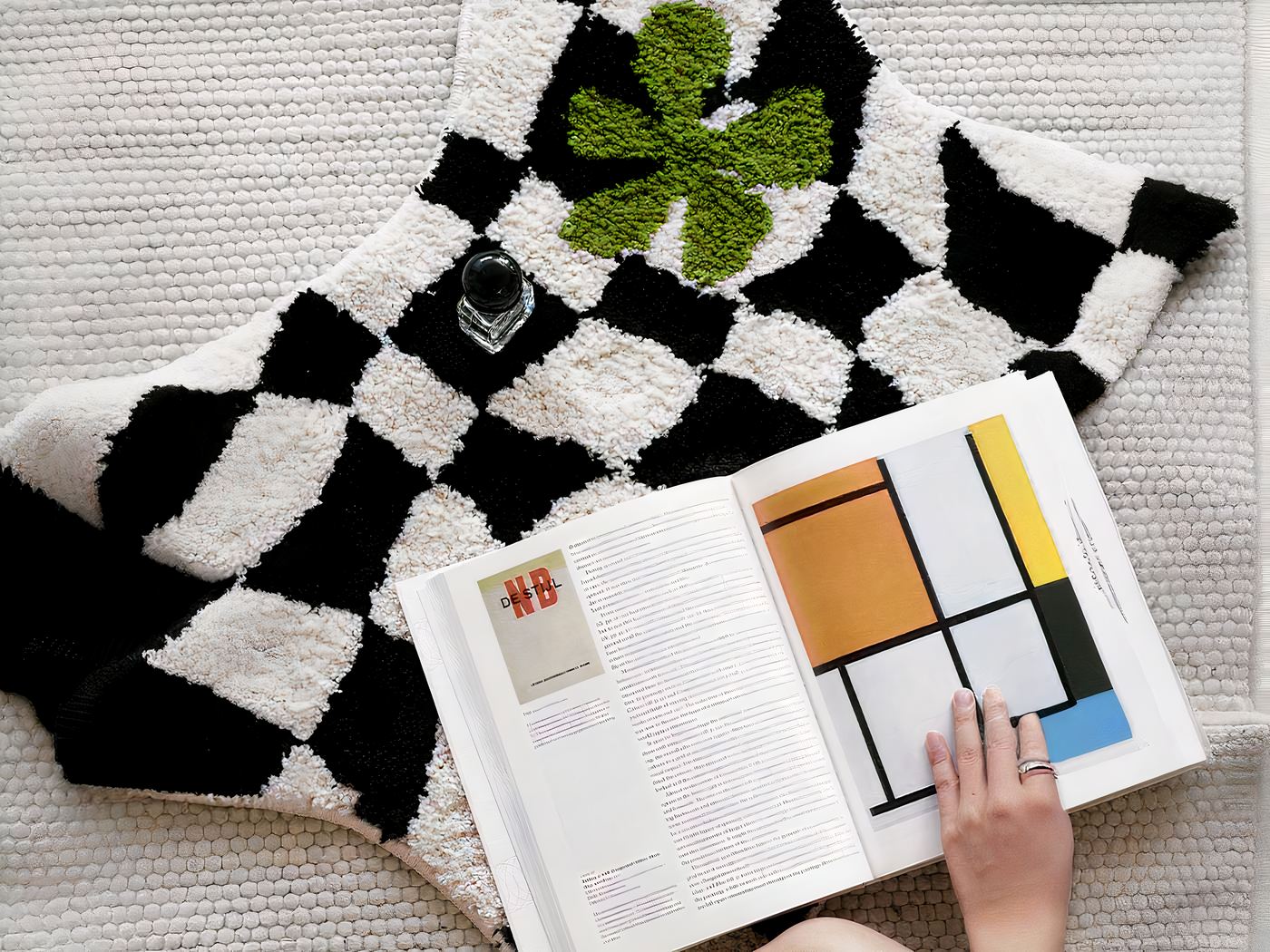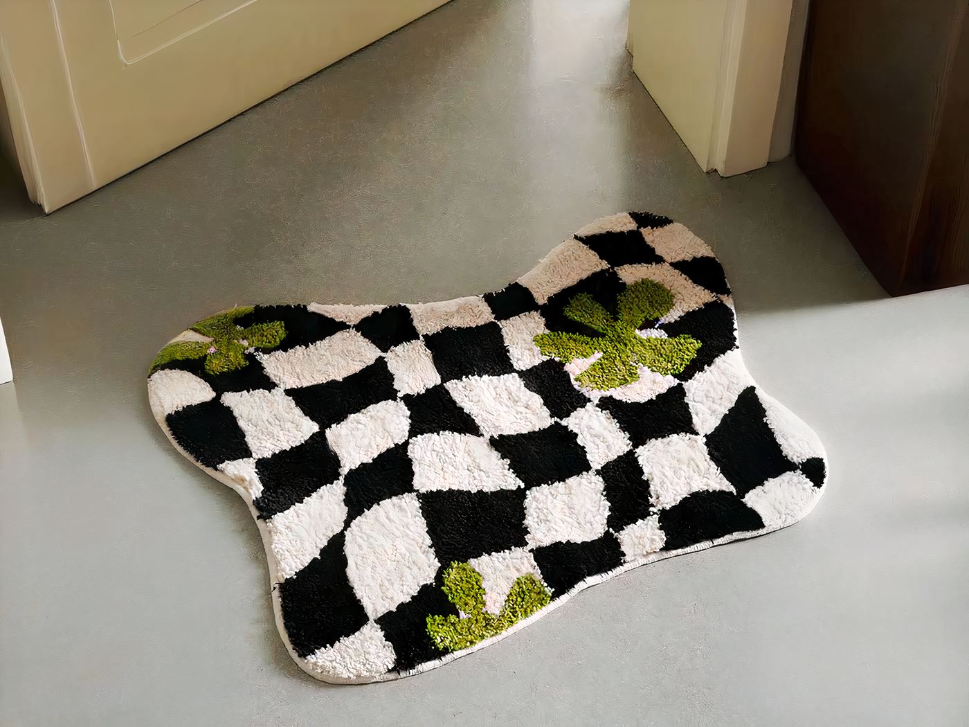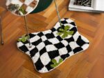 L’audacieux motif géométrique noir et blanc de ce tapis géométrique est accrocheur et élégant, tandis que le trèfle ajoute une touche de fantaisie.