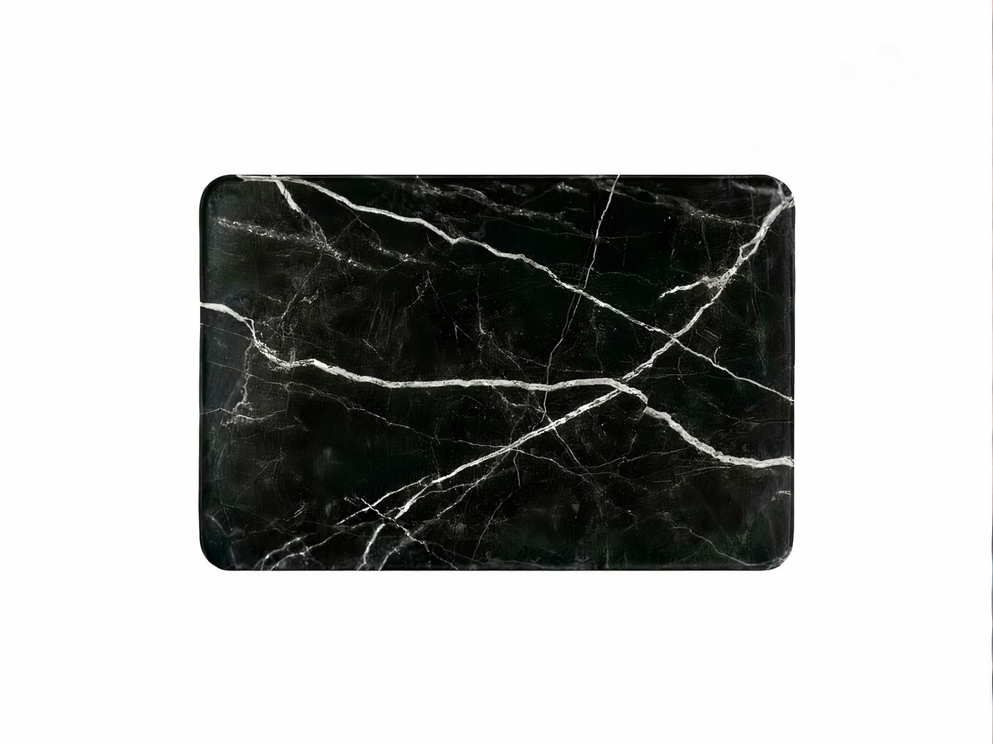 Avec sa combinaison classique de couleurs noire et blanche, ce tapis marbre est parfait pour tous ceux qui aiment les sols basiques.