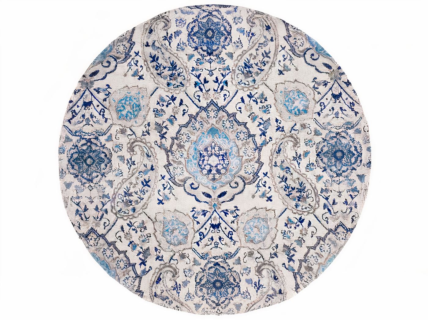 Le tapis oriental rond vintage bleu et gris est un véritable chef-d’Å“uvre de l’artisanat traditionnel. Ce tapis est fabriqué avec une grande attention aux détails, ce qui en fait un produit unique et précieux.