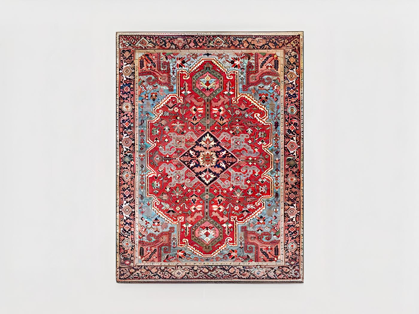 Les nuances rouges sont les couleurs dominantes de ce tapis, créant une ambiance chaleureuse et accueillante dans n’importe quelle pièce où il est placé. Les motifs géométriques complexes et les arabesques entrelacées sont également présents sur le tapis, ajoutant une touche de sophistication et de mystère.