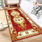 Ce tapis est fabriqué à partir de matériaux de haute qualité, avec des fibres douces, qui garantissent une durabilité et une résistance accrues. Le motif du tapis est inspiré des designs classiques de l’Orient, avec des motifs géométriques complexes et des ornements floraux délicats. Les tons chauds de rouge et d’or créent une ambiance chaleureuse et accueillante, tout en ajoutant une touche de luxe à votre décor.