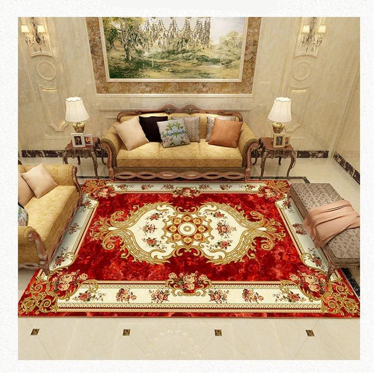 La couleur rouge profond est associée à la passion, à l’amour et à la vitalité, tandis que la couleur or évoque la richesse, la prospérité et la noblesse. Ces deux couleurs se marient parfaitement pour créer un tapis élégant et sophistiqué qui ajoutera une touche de glamour à n’importe quelle pièce.
